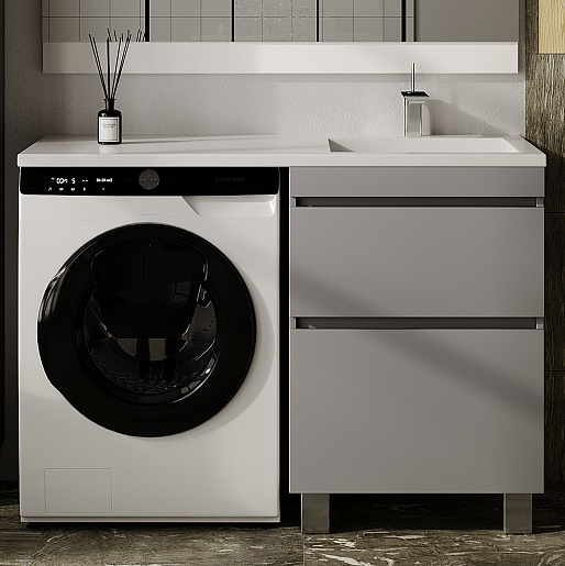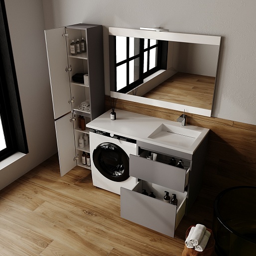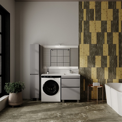 Style Line Мебель для ванной под стиральную машину Леон 120 R Люкс Plus серая матовая