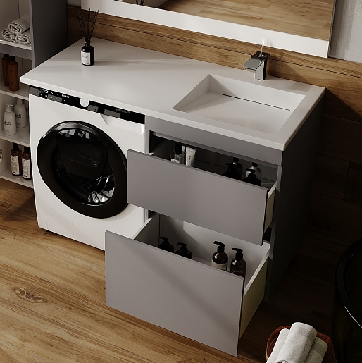 Тумба под раковину над стиральной машиной Леон 120 Люкс Plus серая матовая