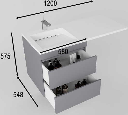 Подвесная тумба с раковиной под стиральную машину Style Line Леон 120 R Люкс Plus - арт. СС-00002451 / СС-00002437 / СС-00002447.