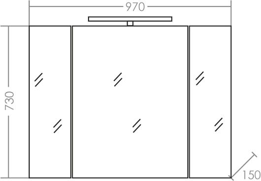 - Габариты со светильником (ШхГхВ): 970x155x775 мм.