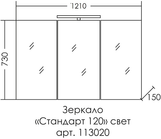 - Габариты со светильником (ШхГхВ): 1200x155x775 мм.
