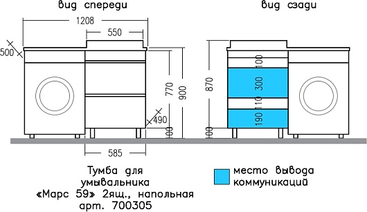 Напольная тумба с раковиной под стиральную машину Санта Марс 120 R - арт. 700305 / 900125 / 900123.