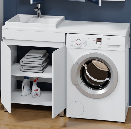 Напольная тумба с раковиной под стиральную машину Санта Марс 130 L - арт. 700315 / 900135 / 900122.