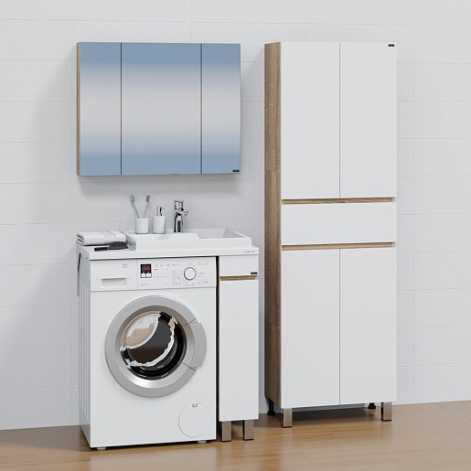 СанТа Мебель для ванной под стиральную машину Марс 80 R белая/янтарное дерево