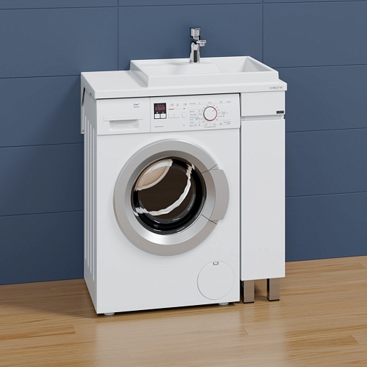 - Раковина из литьевого мрамора с левым крылом для установки над стиральной машиной.