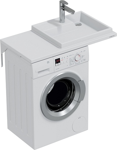 - Раковина из литьевого мрамора с левым крылом для установки над стиральной машиной.
