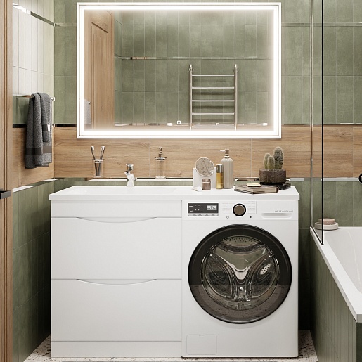 Водолей Мебель для ванной под стиральную машину Смайл 130 L белая