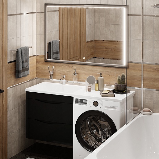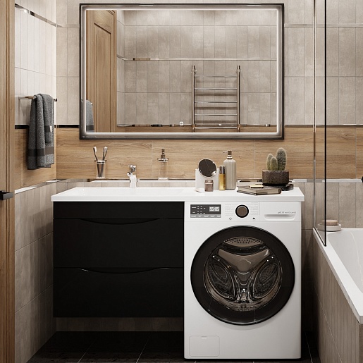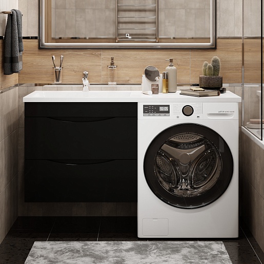 Водолей Мебель для ванной под стиральную машину Смайл 130 L подвесная черная