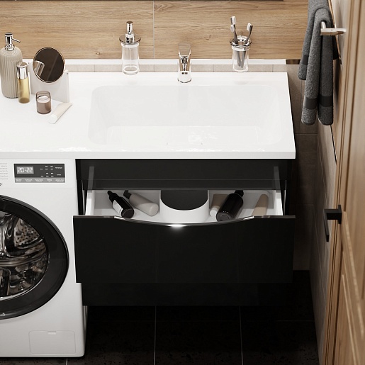 Водолей Мебель для ванной под стиральную машину Смайл 130 R подвесная черная