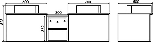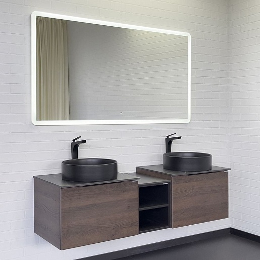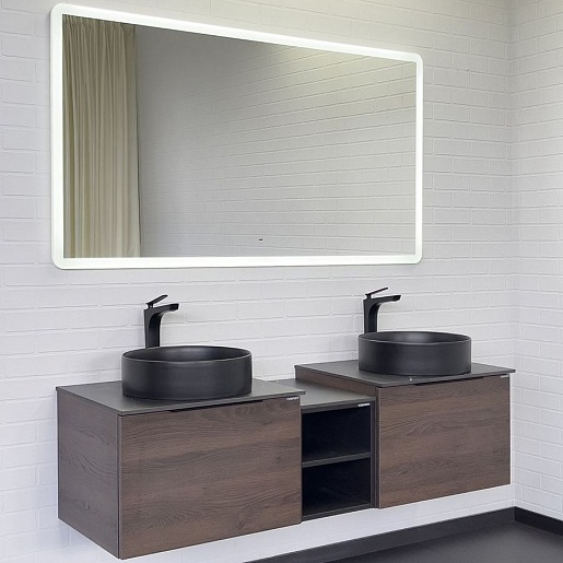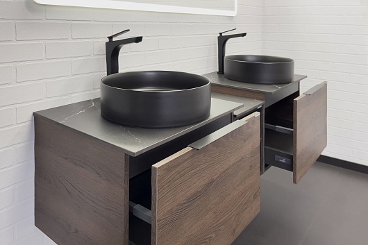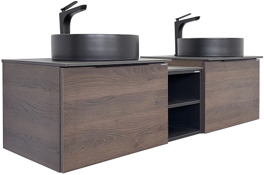 - Тумба с двумя открытыми нишами и керамогранитной столешницей.