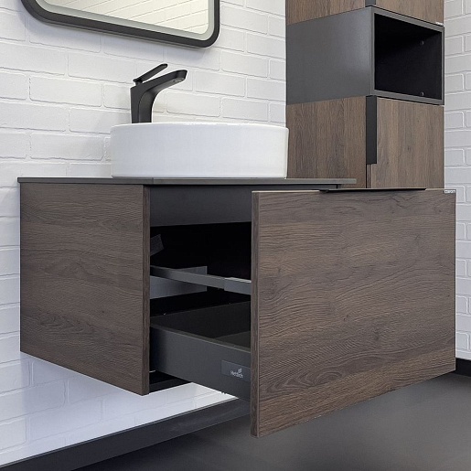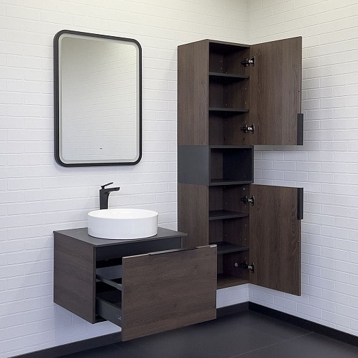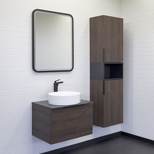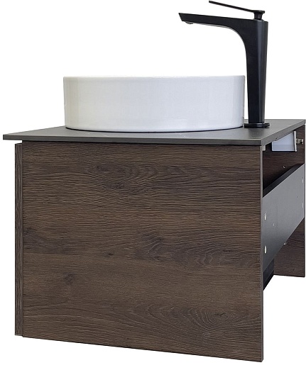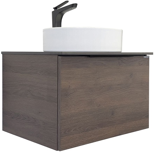 Тумба с раковиной Портленд 60 подвесная дуб шоколадно-коричневый