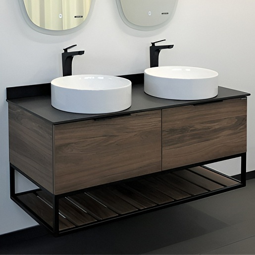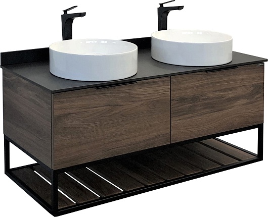 Тумба с раковиной Порто 120 2 подвесная дуб темно-коричневый/черный муар