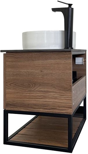 Тумба с раковиной Порто 60 9111 подвесная дуб темно-коричневый/черный муар