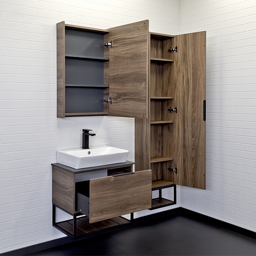 В комплекте: тумба, раковина, столешница, зеркальный шкаф, крепеж.
