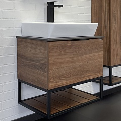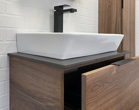 Тумба с раковиной Порто 60 подвесная дуб темно-коричневый/черный муар