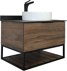 Тумба с раковиной Порто 75 9110 подвесная дуб темно-коричневый/черный муар