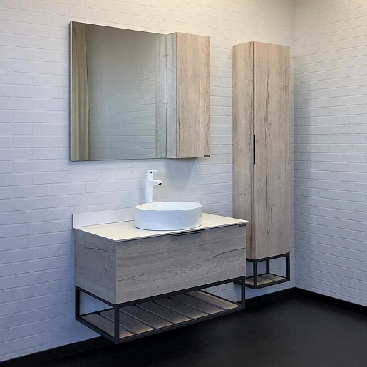 В комплекте: тумба, раковина, столешница, зеркальный шкаф, крепеж.