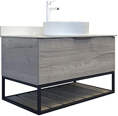 Тумба с раковиной Порто 90 9110 подвесная дуб дымчатый/серый графит