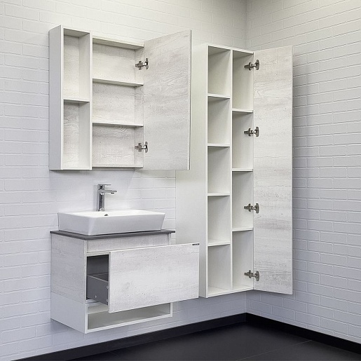 В комплекте: тумба, столешница, раковина, зеркальный шкаф, крепеж.