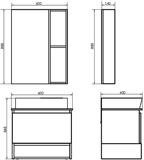 - Размер (ШxВxГ): 600x800x140 мм.
