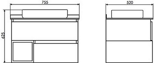- 2 выдвижных ящика, 1 открытая ниша.