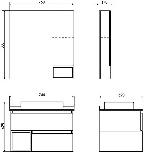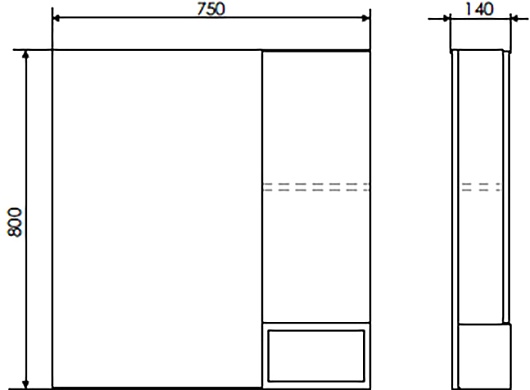 - Размер (ШxВxГ): 750x800x140 мм.
