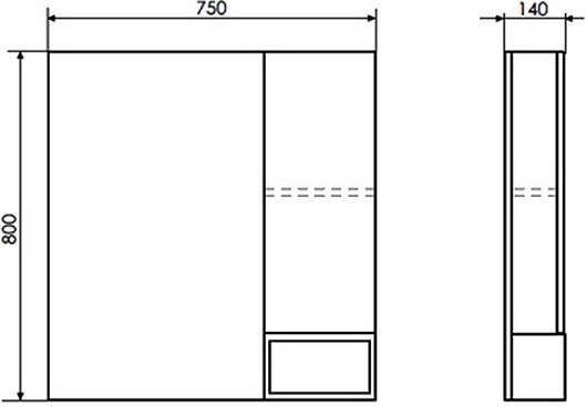 - Размер (ШxВxГ): 750x800x140 мм.