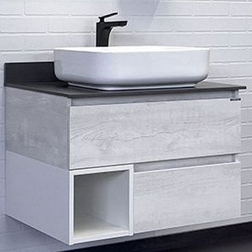 Тумба с раковиной Прага 75 T-Y9378 с графитовой столешницей подвесная дуб белый