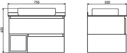- 2 выдвижных ящика, 1 открытая ниша.