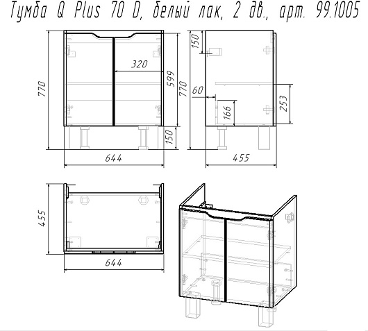 Тумба с раковиной Dreja Q Plus (D) 70 - арт. 99.1005 / 191645.