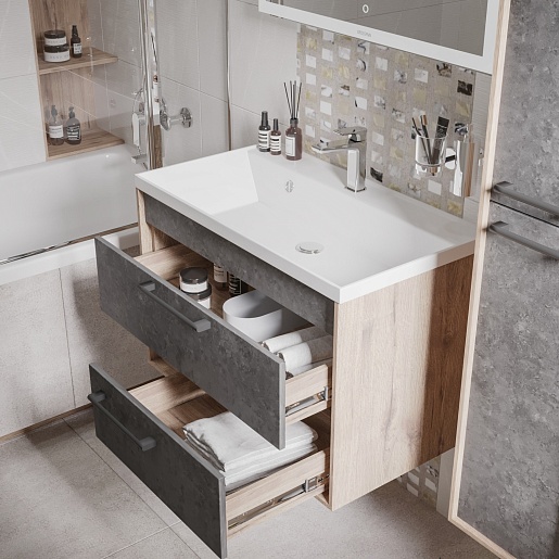 Тумба под раковину Реал 80 подвесная бетон Арья/веллингтон