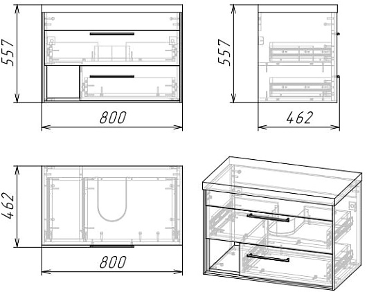 - 2 выдвижных ящика, 1 открытая полка (ниша).