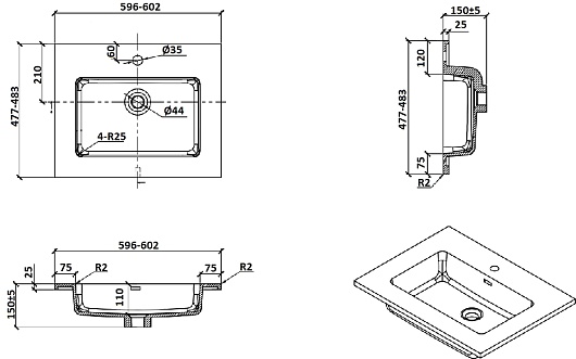 - Раковина из кварцевого композита, устойчивого к термическим воздействиям и бытовым загрязнениям.