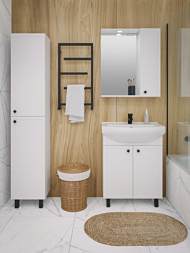 В комплекте: тумба, раковина, зеркальный шкаф, ножка (4 шт.).