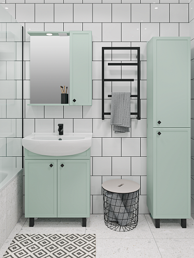 В комплекте: тумба, раковина, зеркальный шкаф, ножка (4 шт.).