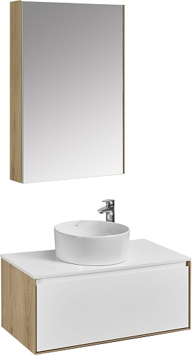 Акватон Мебель для ванной с белой столешницей Либерти 90 Mila 40 белая/дуб эльвезия
