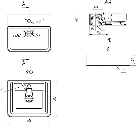 - Две накладные раковины с отверстиями слив-перелива и местом для установки смесителя.