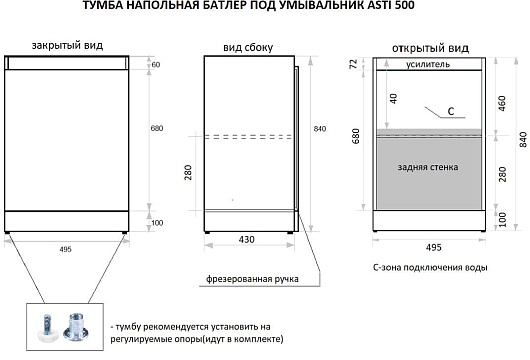 - Напольный монтаж.