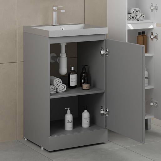 Напольная тумба с раковиной Style Line Батлер 50 серая Люкс антискрейтч Plus - арт. СС-00002489 / СС-00002486.