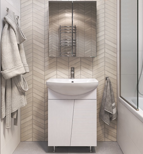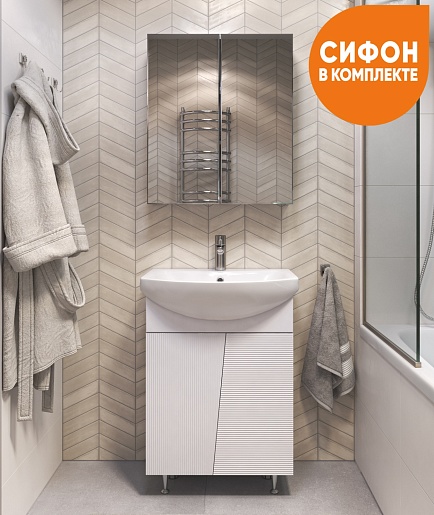 В комплекте: тумба, раковина, зеркальный шкаф, сифон, ножка (4 шт.).