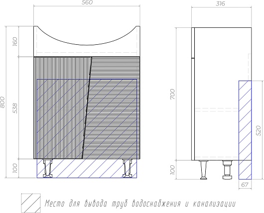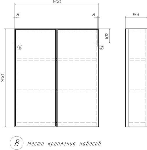 - Размеры (ШхГхВ): 600х154х700 мм.