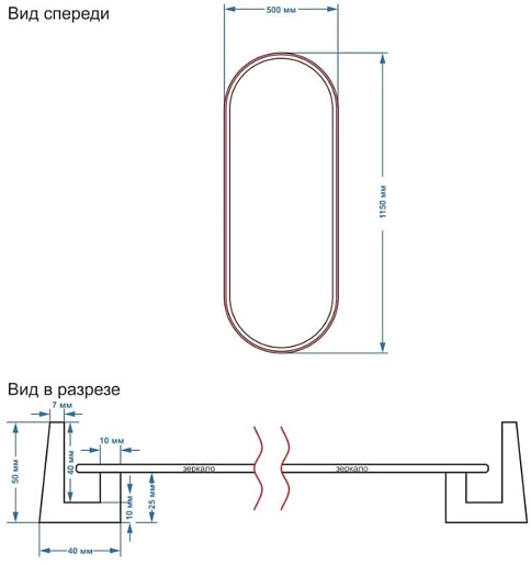 - Размер (ШxВxГ): 500x1150x50 мм.