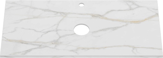 - Керамогранитная столешница под белый мрамор с золотыми прожилками.