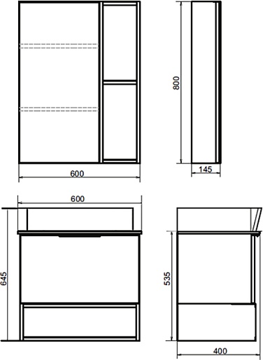 - Материал корпуса/фасада: ЛДСП / ЛДСП, зеркало.