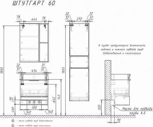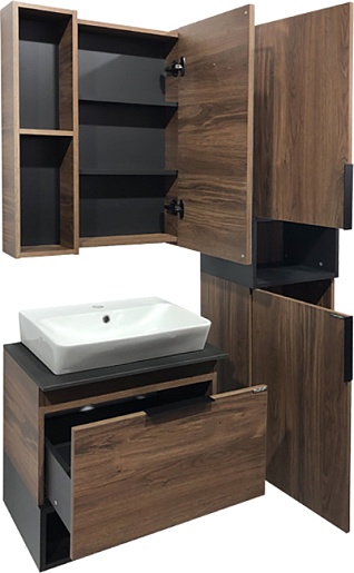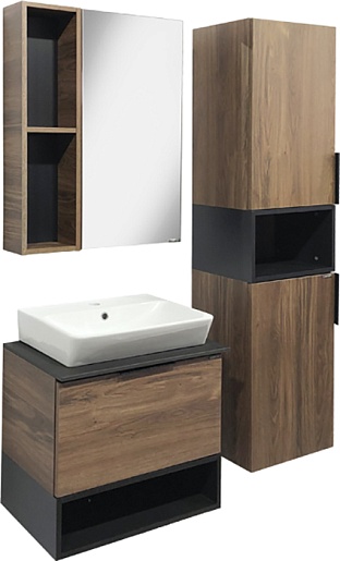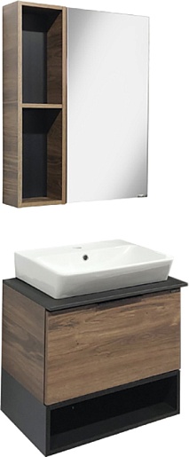 В комплекте: тумба, раковина, зеркальный шкаф, крепеж.