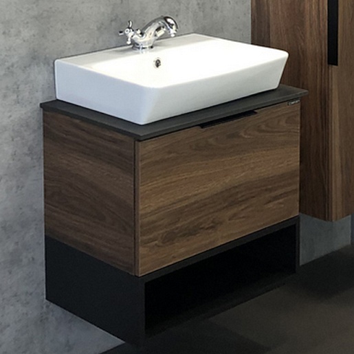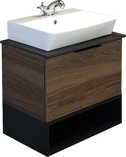Тумба с раковиной Штутгарт 60 подвесная дуб темно-коричневый/черная
