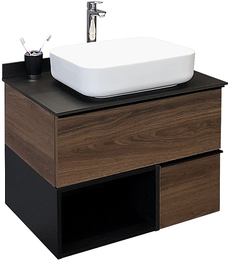 Тумба с раковиной Штутгарт 75 подвесная дуб темно-коричневый/черная