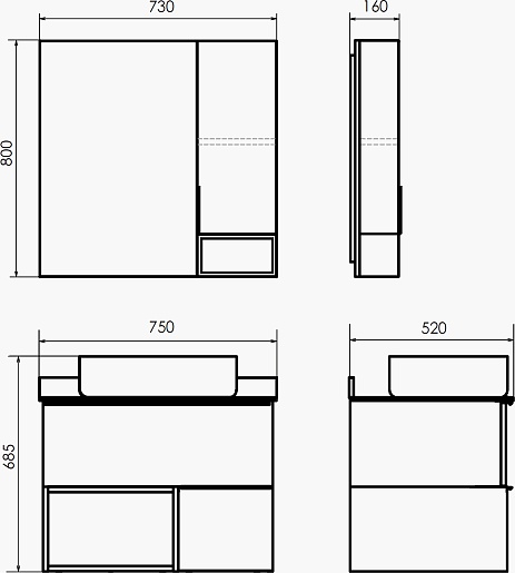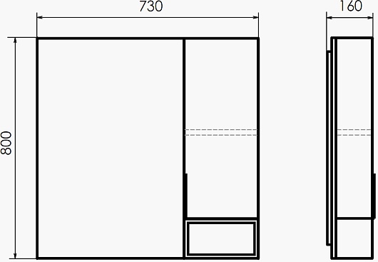 - Размер (ШxВxГ): 730x800x160 мм.