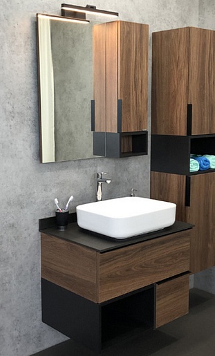 Comforty Мебель для ванной Штутгарт 75 подвесная дуб темно-коричневый/черная