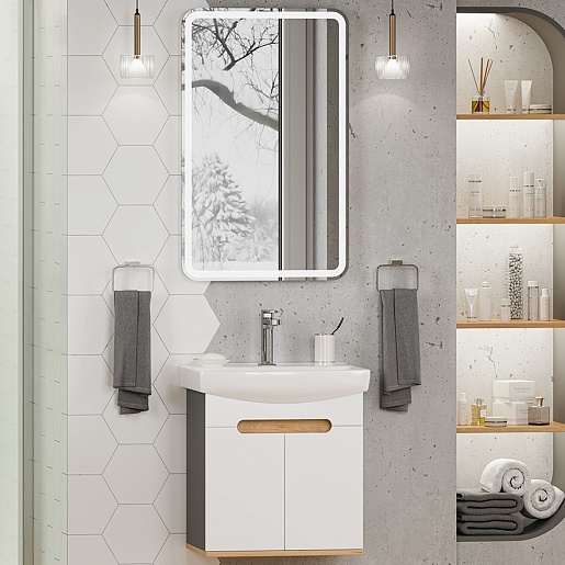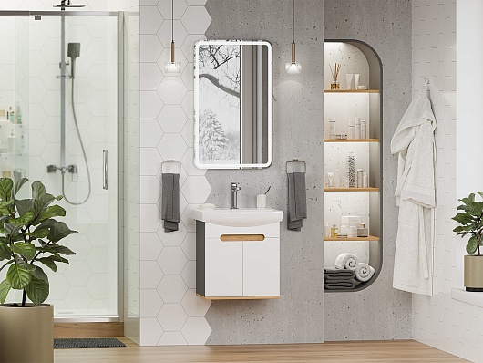Misty Мебель для ванной Сканди 50 подвесная белая/дуб крафт золотой/антрацит
